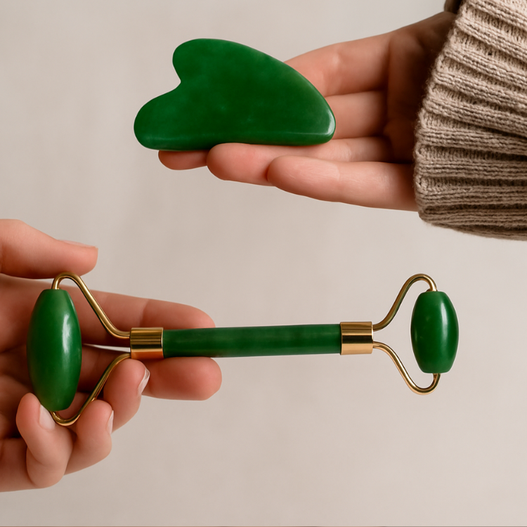 Kit de Massage Visage en Quartz Vert Émeraude – Gua Sha & Roller
